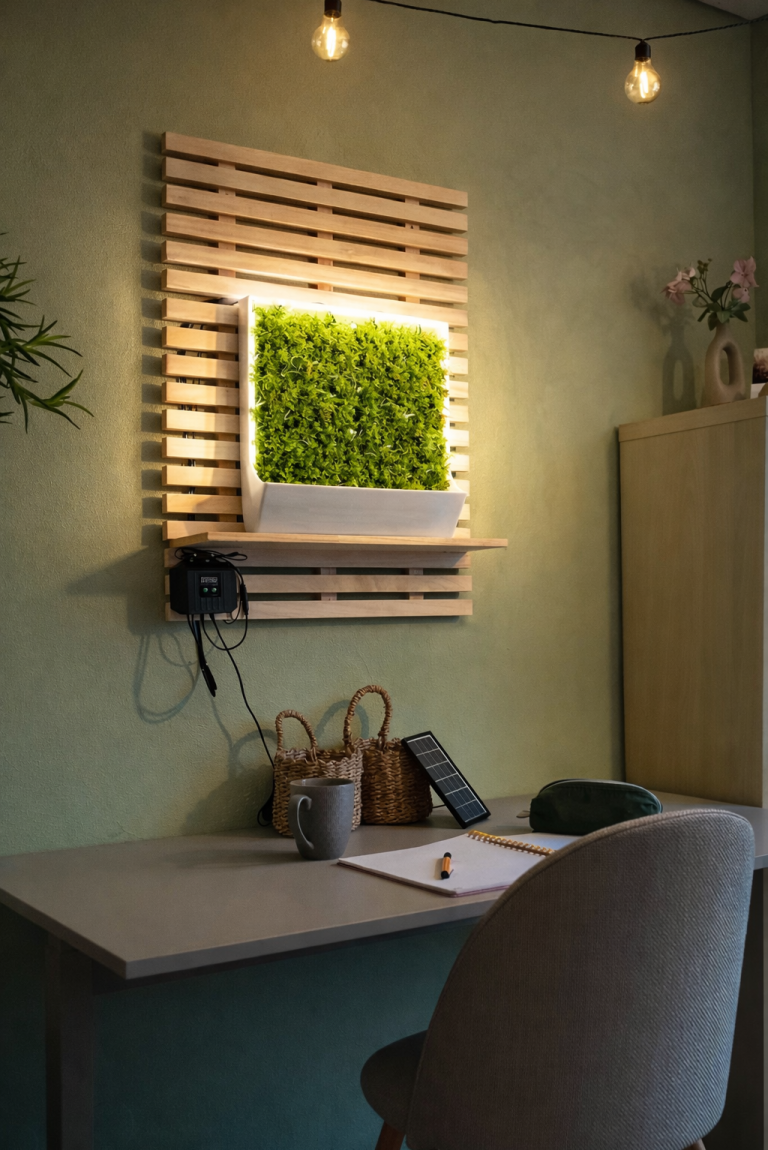 Aus dem ursprünglichen Wunsch nach einem kühlen Klassenzimmer ist unser Produkt Evergreen entstanden – eine lebendige Mooswand, die Raumklima, Wohlbefinden und Akustik verbessert.